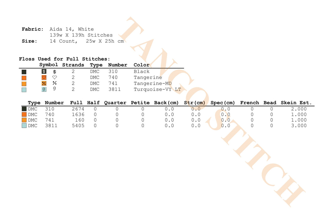 This cross stitch pattern only uses full stitches. It is suitable both for beginner and expert embroiderers.