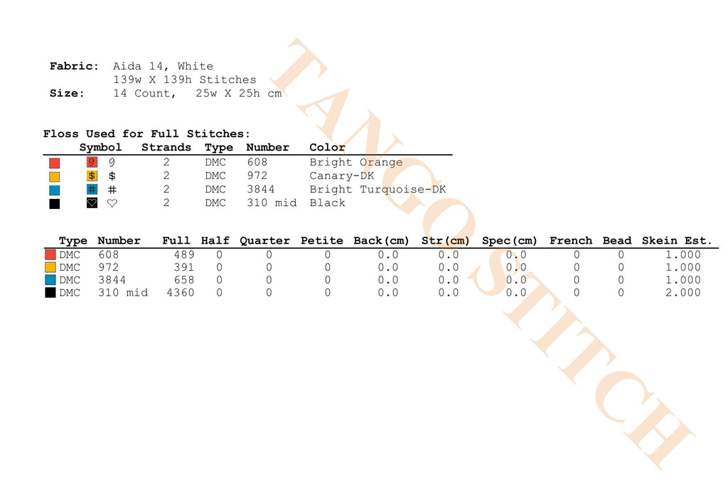 This cross stitch pattern only uses full stitches. It is suitable both for beginner and expert stitchers.